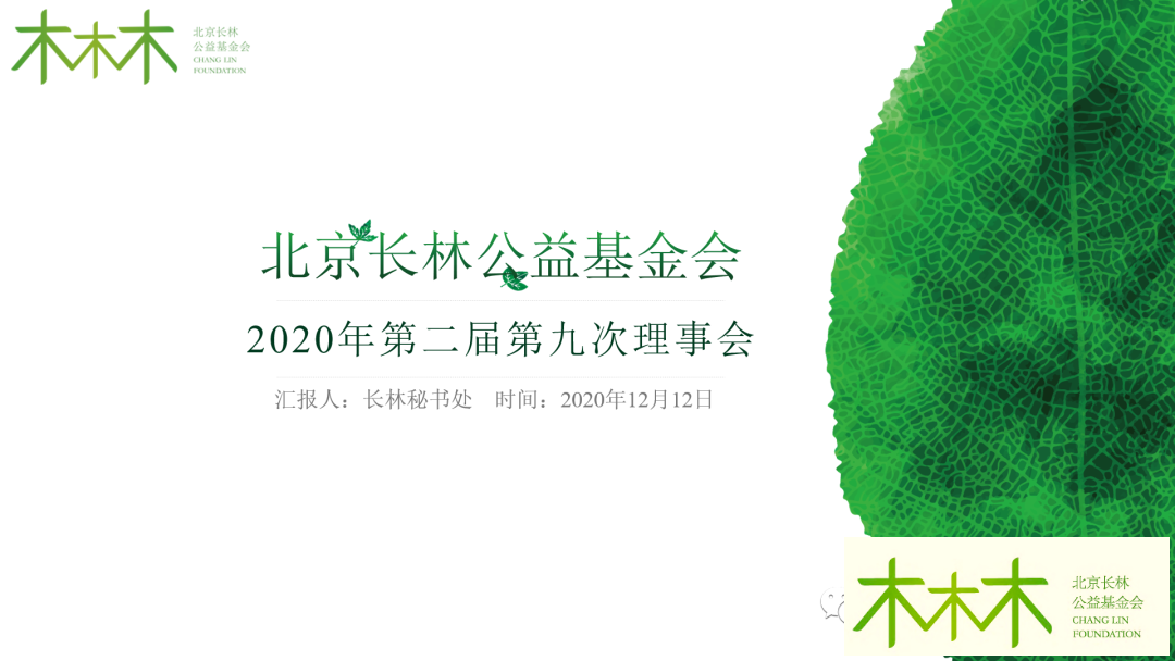 2020年12月12日,北京长林公益基金会召开了第二届第九次理事会,进行2020年工作总结,本次会议由理事长徐长军主持,长林秘书处负责汇报。