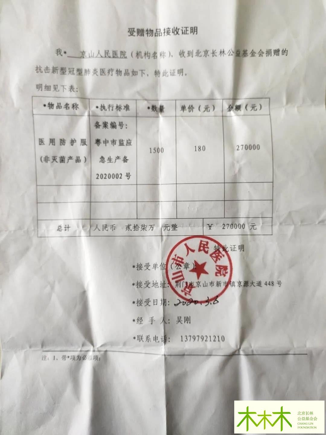 日前,北京长林公益基金会联合北京荆门企业商会及爱心人士们为家乡荆门筹集了部分抗疫善款。在收到善款后,我们在第一时间联系医药公司采购医用防护服、口罩等物资送往荆门地区,助力荆门抗击疫情。