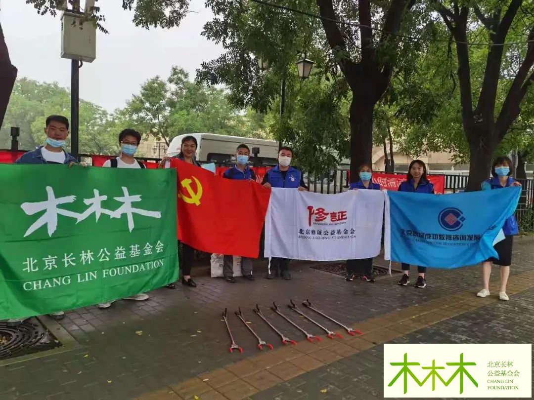 在参观活动开展之前,北京修证公益基金会特邀请我们参加“一小时清洁亮党旗”公益活动,对清华大学西门路口到圆明园南门的这一段人行路上和路边的草丛中进行了认真的清理。